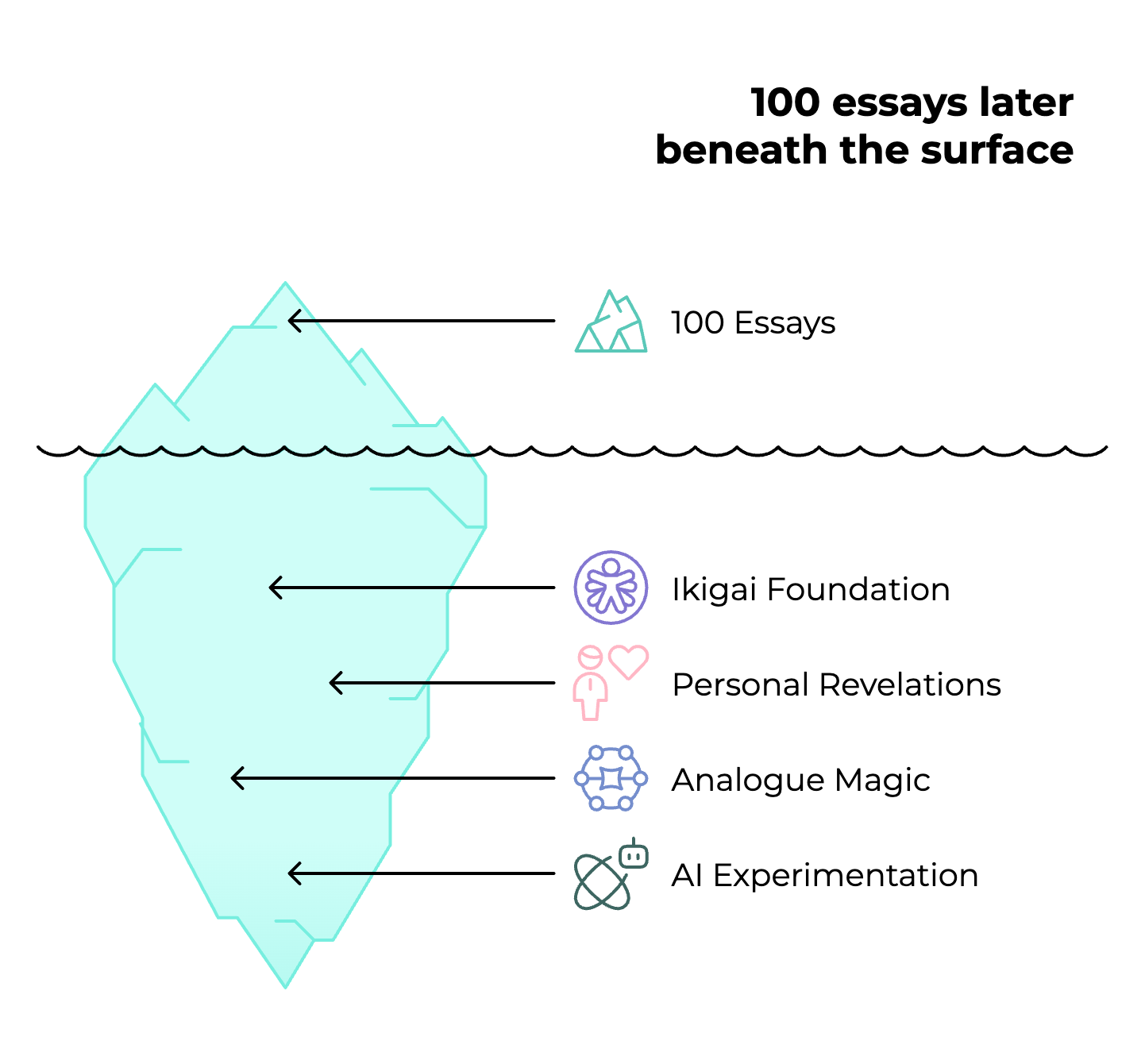 As I stand at the threshold of 50, I'm not done seeking. If anything, these 100 essays have shown me how much more there is to explore, to understand, to become. The silence between essays continues to be fertile ground where ideas germinate and connections form.