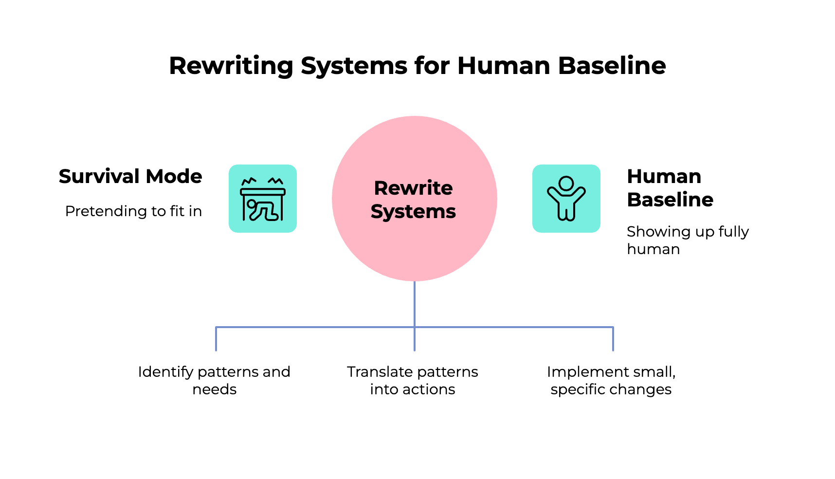 This is the work. Not hustling harder or opting out. Rewriting. One baseline audit, one boundary script, one micro-experiment at a time.