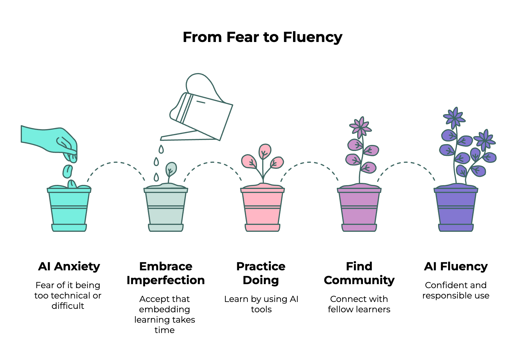 If youâre feeling overwhelmed by how much you donât know, find your people. A community of practice. A colleague whoâs also curious. A friend whoâll experiment alongside you. The language of AI is easier to learn when youâre not learning it alone.