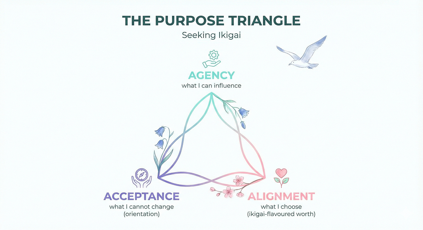 This Purpose Triangle has three points though, not two… and the third one is what makes this ikigai-flavoured rather than just a coping mechanism… alignment.