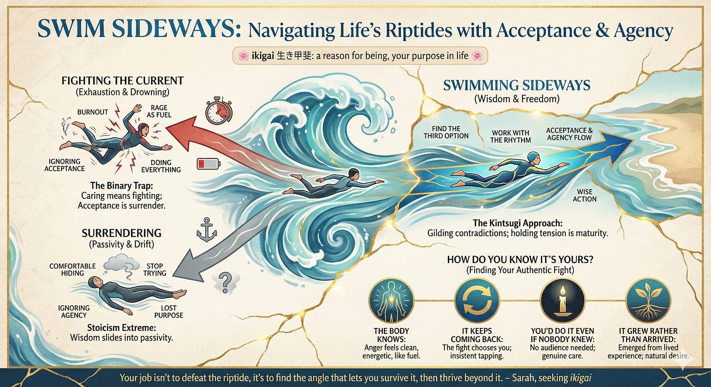 The point isnāt acceptance OR agency. Itās not even about balancing them. I think a good reflection question is⦠which tide am I in right now, and am I swimming in the right direction?