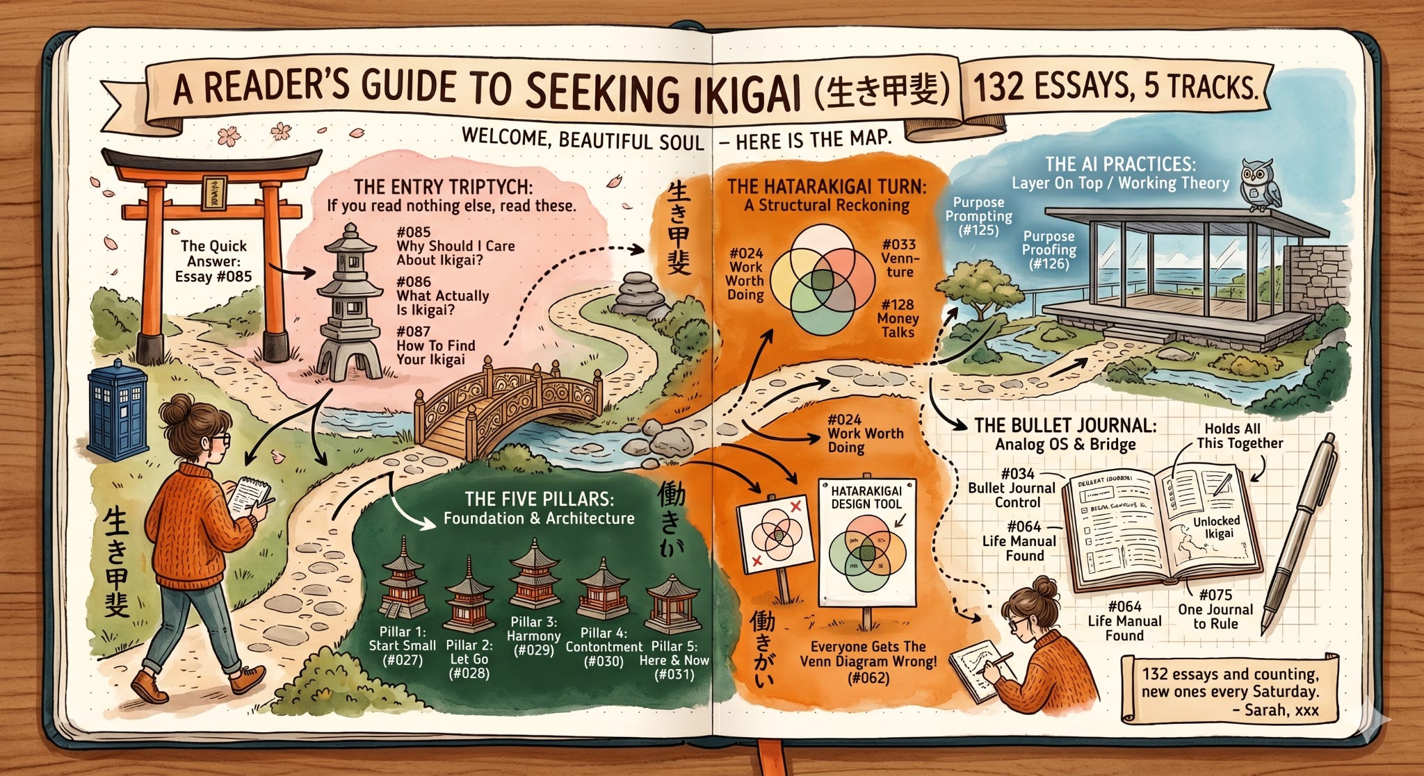 If Track 1 lands and you want the full architecture, this is where I walk through Ken Mogi’s five pillars of ikigai, one essay each. They were published as a series in spring 2024.